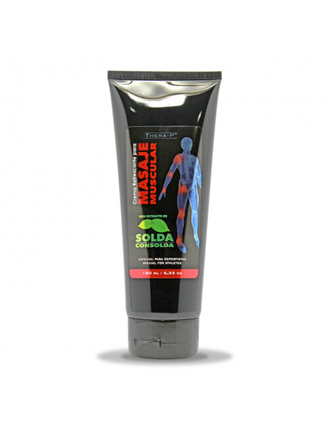 La crema refrescante para masaje muscular de Thera-P contiene adicionalmente mentol, alcanfor y capsaicina natural para coadyuvar los efectos anti-inflamatorios y analgésicos de la Solda con Solda.